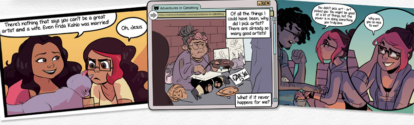 I was not really sure what the graphic novel was really going to be about, besides something to do with an artist and cats, when I first started reading. I could never have expected what the story was really about. This had the new adult genre feel to it, with a young twenty-something woman trying to understand herself and life, caught in the act of just floating by. The emotions were very real, not at all hindered by media they were displayed on. I read a lot of fantasy and supernatural graphic novels, but this was my first time with a realistic fiction story-line, and it was just as entertaining.
